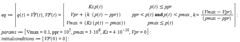 Substituing the parameters from Table 1 into these equations and assuming ΔQ = 0.1 m3 s-1, gives ΔP = 5 x 106 Pa. This agrees with the prediction of the MapleSim model.