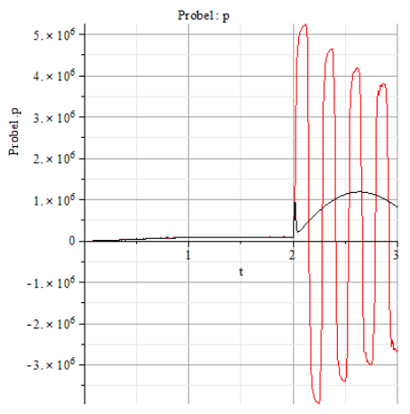Figure 5 demonstrates the pressure surge at the end of a pipeline with (black) and without (red) an accumulator.