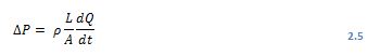 Substituting equations 2.2, 2.3 and 2.4 into 2.1 gives the following equation for the pressure drop across the pipe due to fluid inertia.