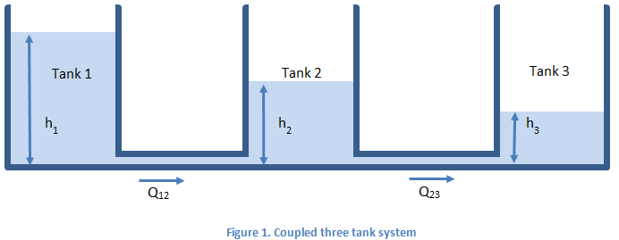 A similar analysis gives the following equation for the flow between tanks 2 and 3.