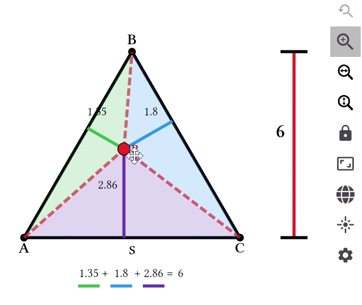 To explore this more, former Maplesoft co-op student Michael Barnett made a Maple Learn document on Viviani's Theorem where this is seen in action, as shown below.