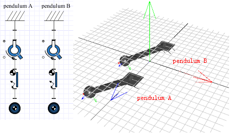 I use maplesim to simulate two simple pendulum, as the figure illustrated. The model works well. I want to let the names "pendulum A" and "pendulum B" appear in the 3D graphical view, so the audience will distinguish them clearly when playing . Is there any way to do with it? By the way, the default color of 3D rigid body is black, is there any way to change color of it? For example, let it be red。