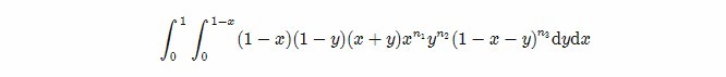 I tried to input the following command: int(int((1-x)*(1-y)(x+y)*(x^n_1)*(y^n_2)*(1-x-y)^n_3, y=0..1-x),x=0..1);