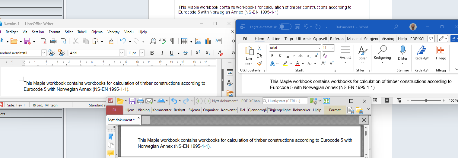 Judge it for yourself, but in my opinion it gives a clear picture that Maple is much worse to read than any of the other software packages (Word, LibreOffice, pdfXChange).