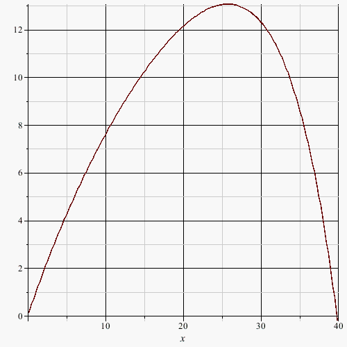 ..."So I'm going to revise the calculation above." From your previous calculations, I could not determine the value of the fenced meadow. (Note: The value should be above 15200.) It should also be clear how the fence is closed at the eastern end along the x-axis – with or without a tangent. The proof that only symmetrical fence construction is possible is unnecessary here.