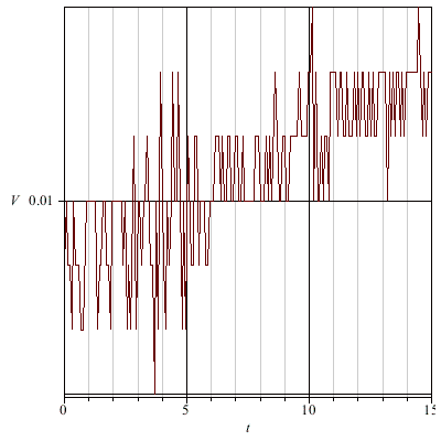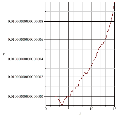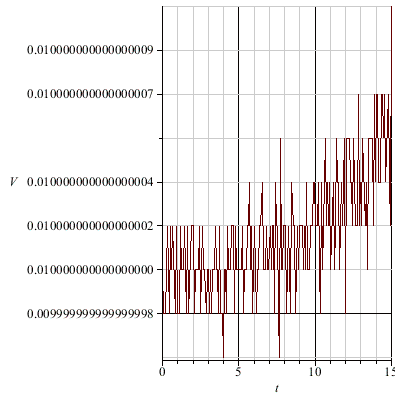 The plot for V(t) is not believable. I expect something nearly constant. But if I narrow the range: