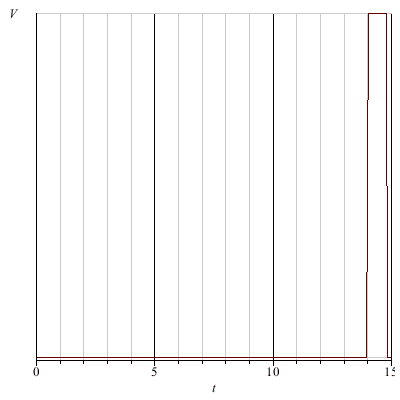 plots:-odeplot(Sol, [t,V(t)], t= 0..15);