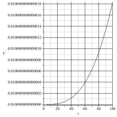I just uploaded the worksheet for my numeric solution and put it as a Reply to my numeric Answer below. There is a disturbing difference in the plot of V(t). The symbolic solution is more believable: Since L(t) is nearly linear, ode1 implies that V(t) is nearly constant.