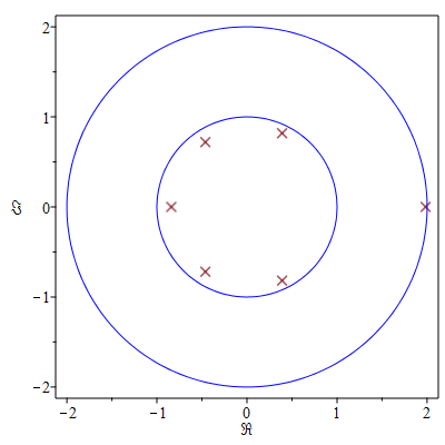 plot([Re,Im]~([R]), style= point, symbol= diagonalcross, symbolsize= 16),