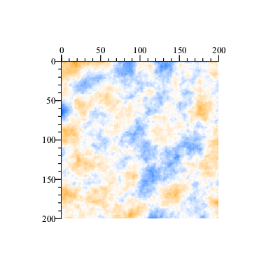 @Markiyan Hirnyk Thank you very much for the encouragement. That's a beautiful painting. The clouds are similar to the Gaussian Random Fields with large convolution radii. I find them also beautiful. Here's an example of a GRF(512, 128) (the 128 is the convolution radius). (Sorry for the excessive whitespace---these are 3D plots projected onto one of the coordinate planes; I don't know how to eliminate it.) It looks like this could be a model for how the shapes of continents, islands, and oceans develop.