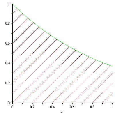 d:=plot(exp(-x),x=0..1,color=green):