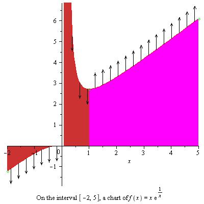 Student[Calculus1][FunctionChart](x*exp(1/x),x=-1..5);