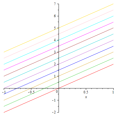 plot( [ seq( 2*x+i/2, i=0..10 ) ], x=-1..1 );