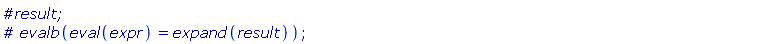 if `and`(evalb(op(0, convert(indets(expr), list)[nops(convert(indets(expr), list))-1]) = Determinant), evalb(op(0, convert(indets(expr), list)[-1]) = KroneckerProduct)) then result := ('Determinant')([op([op(expr)][1])][1])^(eval(('RowDimension')([op([op(expr)][1])][1])))*('Determinant')([op([op(expr)][1])][2])^(eval(('RowDimension')([op([op(expr)][1])][2]))) end if; result; evalb(eval(expr) = expand(result))