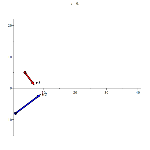 V2:=arrow([1+8*t,-8+6*t],[8,6],  width = [0.04, relative], head_length = [0.1, relative], color=blue);