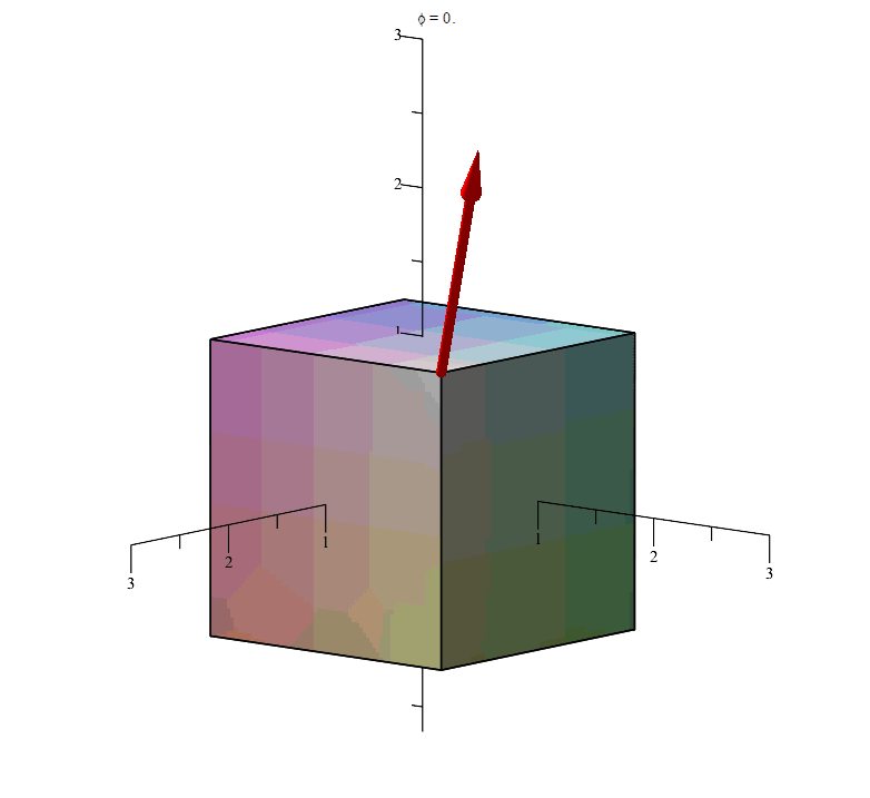 Below is an example of rotation of a cube around the axis defined by the vector <1, 1, 1> :