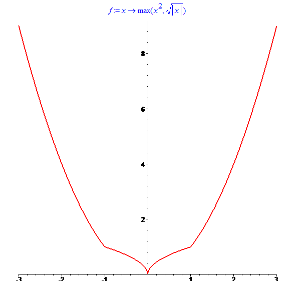 if x^2>sqrt(abs(x)) then x^2 else sqrt(abs(x)) fi;