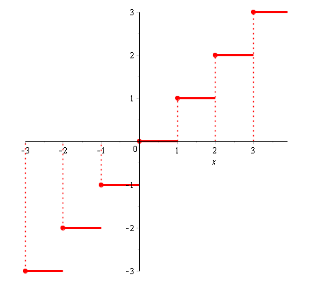plot([floor(x), seq([i, t, t = min(0, i) .. max(0, i)], i = -3 .. 3)], x = -3 .. 3.9, thickness = [3, 1$7], color = red, linestyle = [1, 2$7], discont = true, symbol = solidcircle, symbolsize = 15);