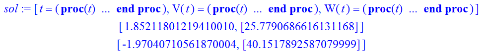 sol:=dsolve({op(eval(sys,Ie=0.5)), V(0)=0, W(0)=1}, numeric, output=listprocedure);