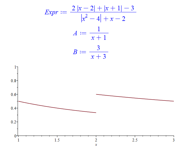 Expr:=(2*abs(x-2)+abs(x+1)-3)/(abs(x^2-4)+x-2);