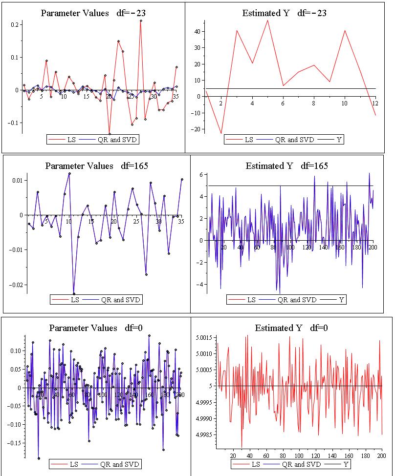 concerned about the poor performance of LS both for a Underdetermined (df<0),