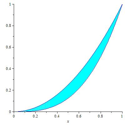 plot(x^2 - x^3, x = 0 .. 1, filled = true, colour=cyan))]);