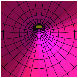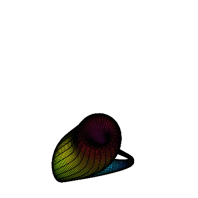 plot3d(S, t = 0 .. Pi, v = 0 .. 2*Pi, scaling = constrained, grid=[100, 30], lightmodel = light3, colour=t,viewpoint=[path=[P,t=0..Pi],look=forward,fieldofview=90], frames=100);