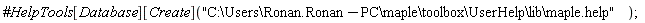 Error, (in HelpTools:-HelpCallUI) help database 'C:\Users\Ronan.Ronan-PC\Documents\MAPLE\Rational Trinonometry\C:UsersRonan.Ronan-PCmaple        oolboxUserHelplibmaple.help' already exists