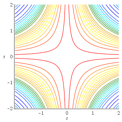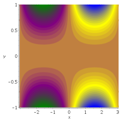 subsindets(plots:-contourplot([x,t,u], f=-7..7, t=-7..7, grid=[101,101],