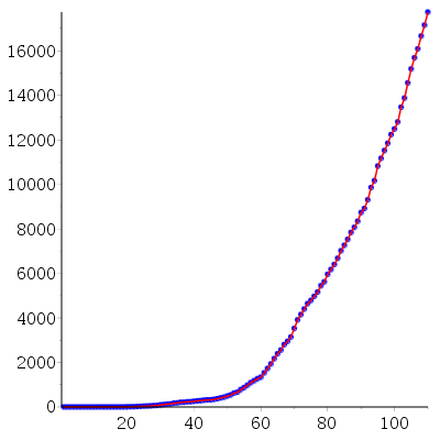 plots:-display(plots:-listplot(Y, color = blue, style = point, symbol = solidcircle), plots:-listplot(X, color = red));