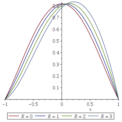 plot([seq(expr, R = [0, 1, 2, 3])], x = -1 .. 1, color = [red, blue, green, magenta], legend = [seq('R' = R, R = [0, 1, 2, 3])])