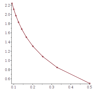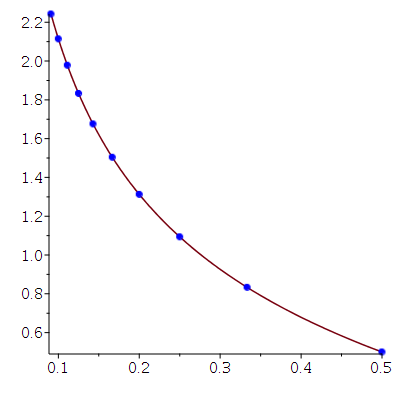 plot([1/(1+n), expr, n = 1 .. 10], adaptive = false, numpoints = 10, style = pointline, symbolsize = 15)