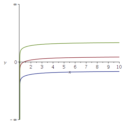 plot([f(x), f(x)-2, f(x)+2], x=1+1e-8 .. 10),