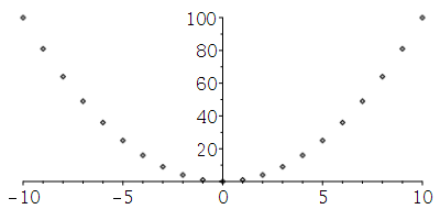 [[-10, 100], [-9, 81], [-8, 64], [-7, 49], [-6, 36], [-5, 25], [-4, 16], [-3, 9], [-2, 4], [-1, 1], [0, 0], [1, 1], [2, 4], [3, 9], [4, 16], [5, 25], [6, 36], [7, 49], [8, 64], [9, 81], [10, 100]]