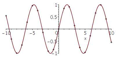 [[-10, -sin(10)], [-9.0, -.4121184852], [-8.0, -.9893582466], [-7.0, -.6569865987], [-6.0, .2794154982], [-5.0, .9589242747], [-4.0, .7568024953], [-3.0, -.1411200081], [-2.0, -.9092974268], [-1.0, -.8414709848], [0., 0.], [1.0, .8414709848], [2.0, .9092974268], [3.0, .1411200081], [4.0, -.7568024953], [5.0, -.9589242747], [6.0, -.2794154982], [7.0, .6569865987], [8.0, .9893582466], [9.0, .4121184852], [10.0, -.5440211109]]