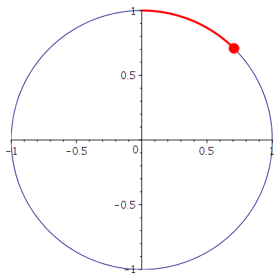 plot([sin(tt),cos(tt),tt=0..t],color="Red",thickness=3),