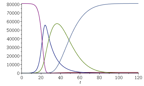 plot([Dxfun, Exfun, Ixfun, Rfun, Sfun], 0..120, size=[500,300]);