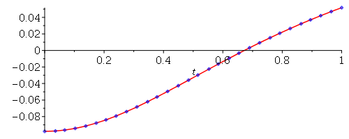 plot([lambda(t), K], t = a .. b, style = [line, point], color = [red, blue], adaptive = false, numpoints = 30, size = [500, 200])