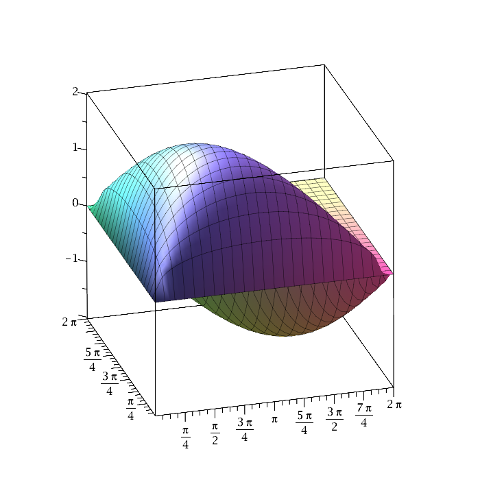 plot3d( [V,0], 1e-9 .. 2*Pi, 1e-9 .. 2*Pi );