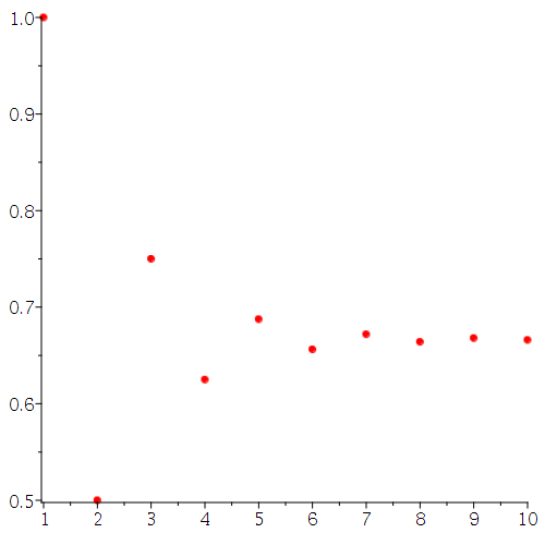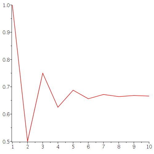 plots:-listplot([seq(b(i),i=1..10)],