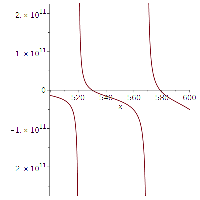 Digits := 30; plot(eq, x = 500 .. 600, discont); Digits := 10