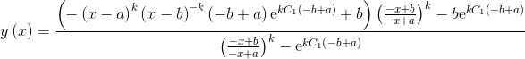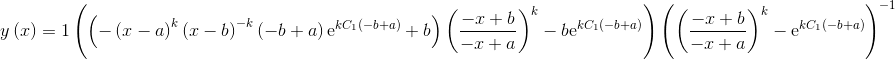 y(x) = ((-(x-a)^k*(x-b)^(-k)*(-b+a)*exp(k*C[1]*(-b+a))+b)*((-x+b)/(-x+a))^k-b*exp(k*C[1]*(-b+a)))/(((-x+b)/(-x+a))^k-exp(k*C[1]*(-b+a)))