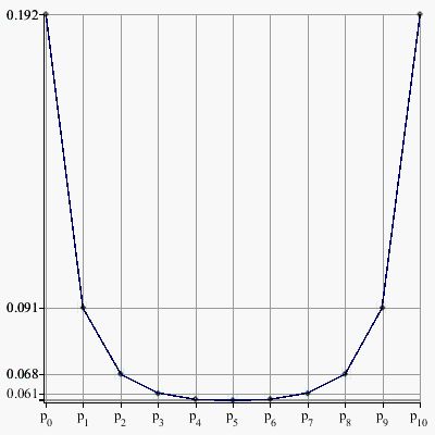 [.192413186080606, 0.906594292940704e-1, 0.677108912885780e-1, 0.609551830556988e-1, 0.589744573790909e-1, 0.585737058072817e-1, 0.589744573787748e-1, 0.609551830550955e-1, 0.677108912877626e-1, 0.906594292931833e-1, .192413186079858]