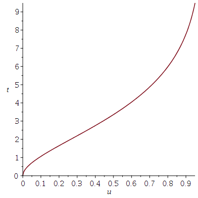 plot(eval(t,s), u=0..0.95, labels=[u,t]);