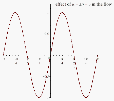 p2:= textplot([0,1.2,typeset("effect of ",alpha=3,",",gamma=5," in the flow")]):