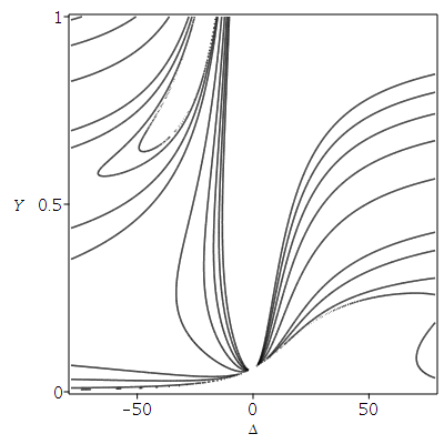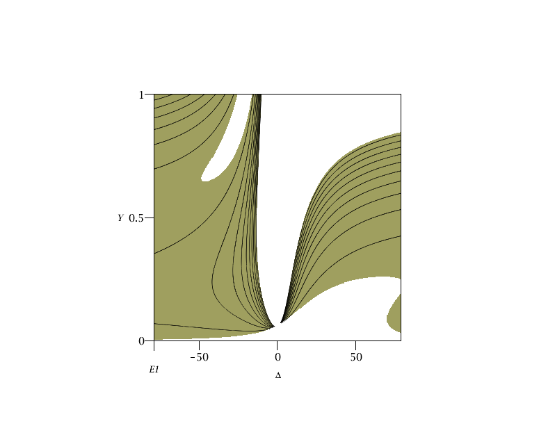 style=surfacecontour, color=khaki, labels=[Y,Delta,E1],