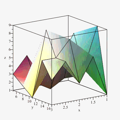 plots:-surfdata(G, 1..3, 5..17, labels=["x","y","z"],