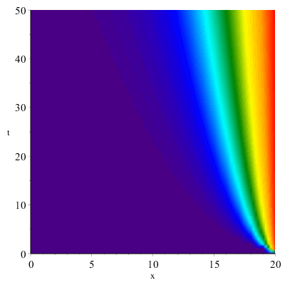 surfdata(Matrix(T), 0..nx, 0..tmax, style=surface,