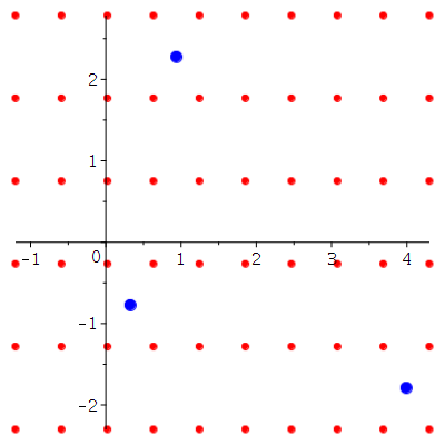 display(P1, pointplot(C(9, 1, nx[1], ny[1]), color = blue, symbol = solidcircle, symbolsize = 20), pointplot([C(4, 5, nx[1], ny[1]), C(3, 2, nx[1], ny[1])], color = blue, symbol = solidcircle, symbolsize = 20))