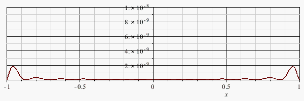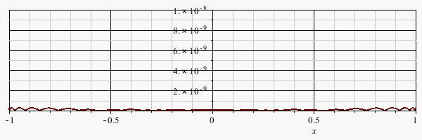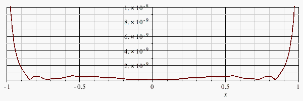 plot([abs(Y(x)-CFy)], x=-1..1, size=[600,200], view=0..1e-8);